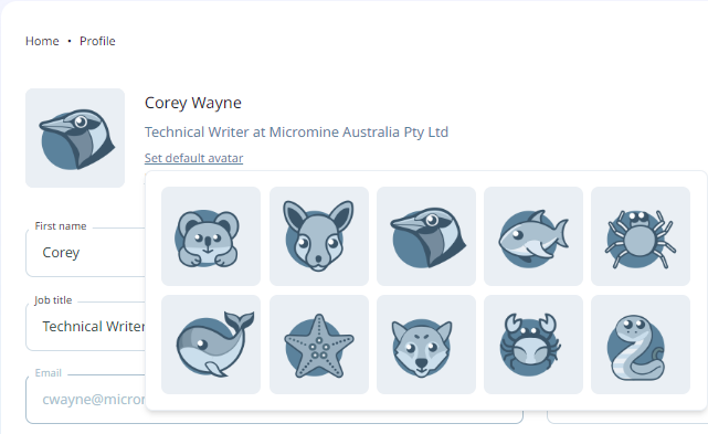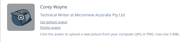 The Set default avatar option is used to set a default image to represent you, or another user. If you click the link, a panel containing the available avatars is displayed and you can select the preferred default: