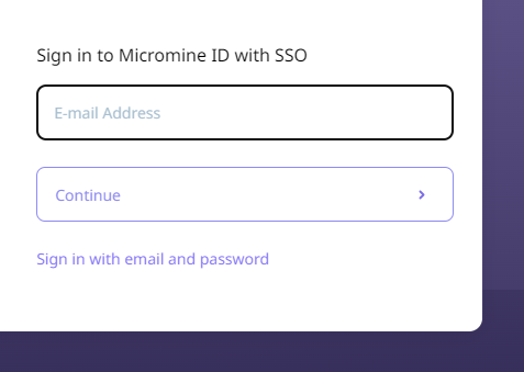 If you would like to Use single sign-on to login, click the button to open the SSO login screen and enter your Micromine ID email:
