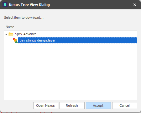 In the Nexus Tree View dialog, select the layer you want to download and click Accept:
