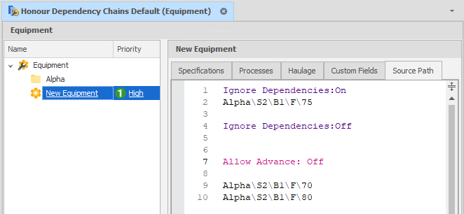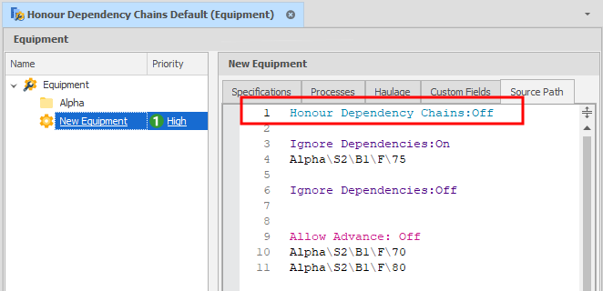 The Source Path syntax has been extended to include an Honour Dependency Chains flag which determines whether predecessor tasks are honoured or not when dependencies are ignored. There are two states: