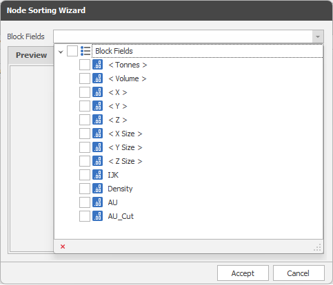 Click the Wizard icon to quickly generate calculated fields from fields in the source block model. You can then edit the expressions to reference more than one block model field, if necessary.