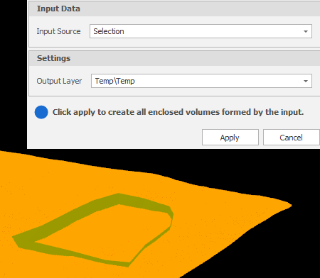 Click Apply to create all closed volumes. For example, a pit shell and a surface are selected as the input data: