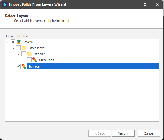 In the Import Solids from Layers wizard, select the layers to import and then click Next.