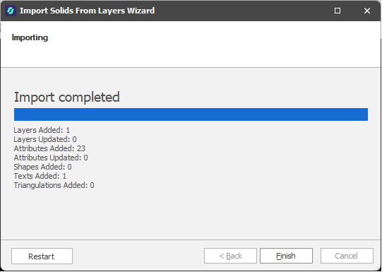 Click Restart (at the lower left of the Wizard window) to proceed with another import and return to the Import Options page. From there you can adjust your import settings and re-import if needed.