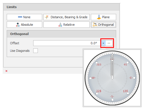 Click the drop-down to visually select a bearing by dragging the mouse in a clockwise or counter clockwise direction.
