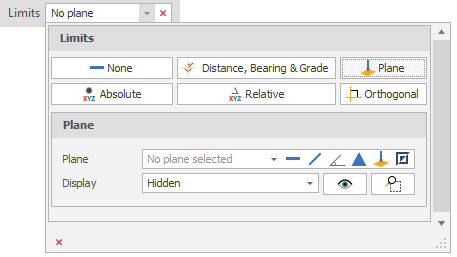 (Optional) There are three Plane Display modes. Select an (Outline or Fill ) option to visualise the plane limit. Hidden (no visualisation) is the default option.