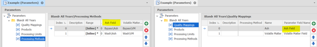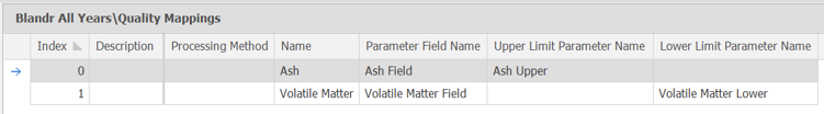 The Ash/VM fields will represent any different Quality Mappings, set up in the next Parameter, that are used to identify different product gates. These can be added or changed in the Settings of the parameter if there are more or less qualities that need to be considered.