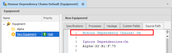A Source Path is the primary set of source scheduling instructions for a particular piece of Equipment and controls which Leaves are worked and in what order, as well as controlling the behaviour of equipment when it is unable to complete those defined instructions. For a conceptual overview, see: Equipment Source Path